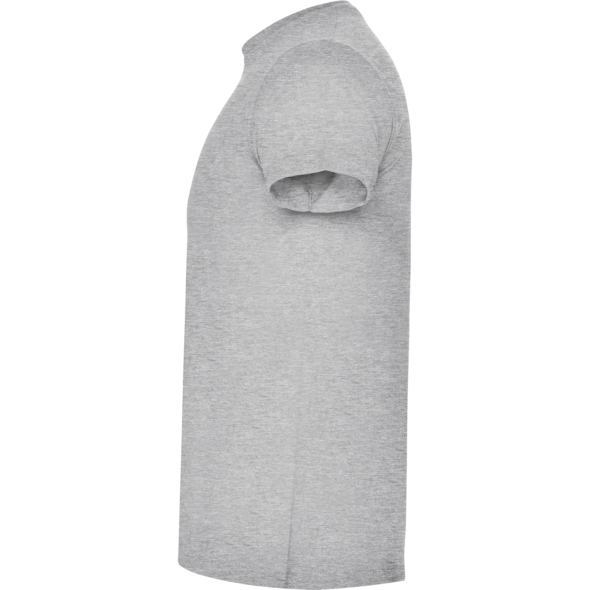 Camiseta de manga corta tubular. Cuello redondo en canalé 1×1 con cubrecosturas en cuello del mismo tejido.