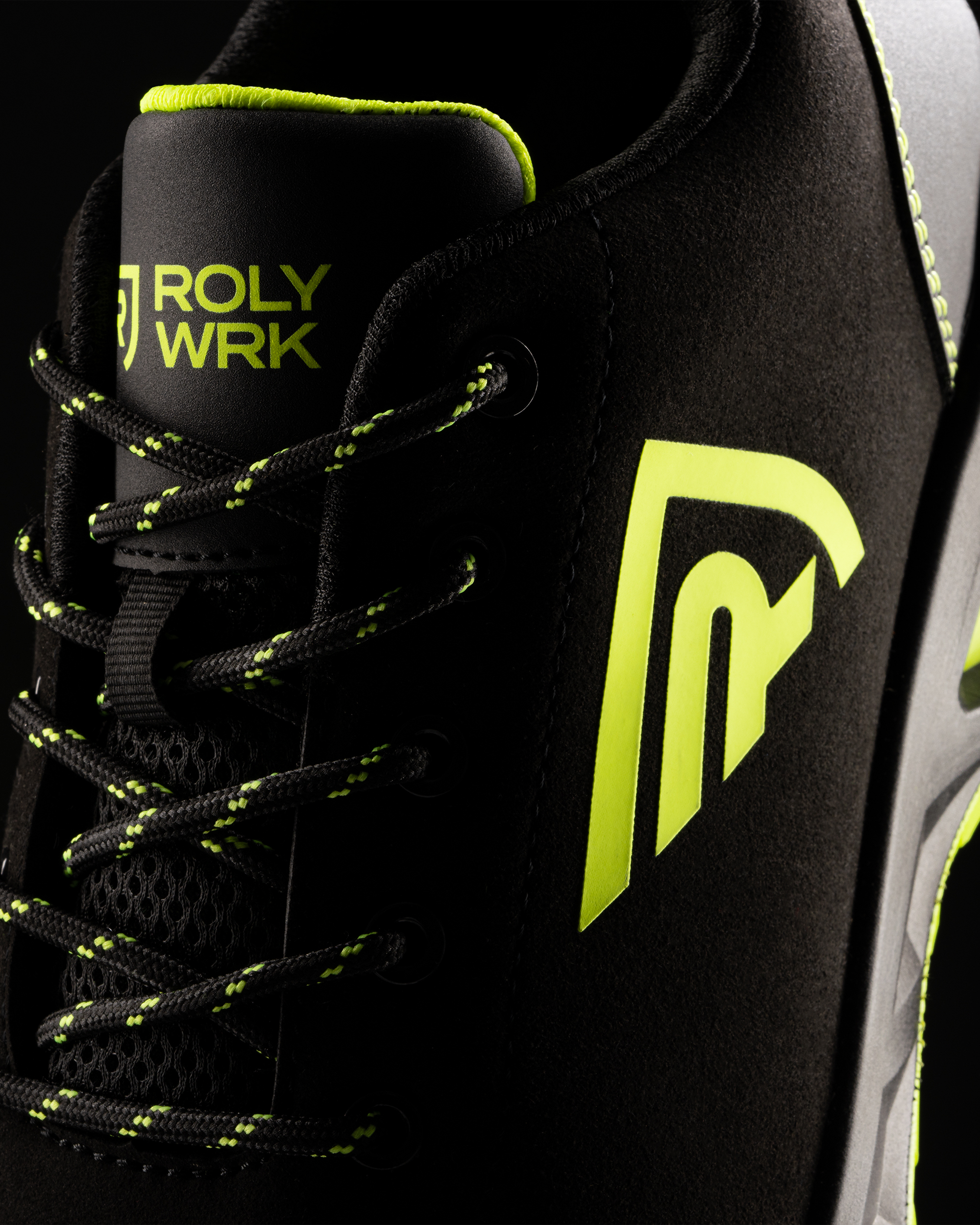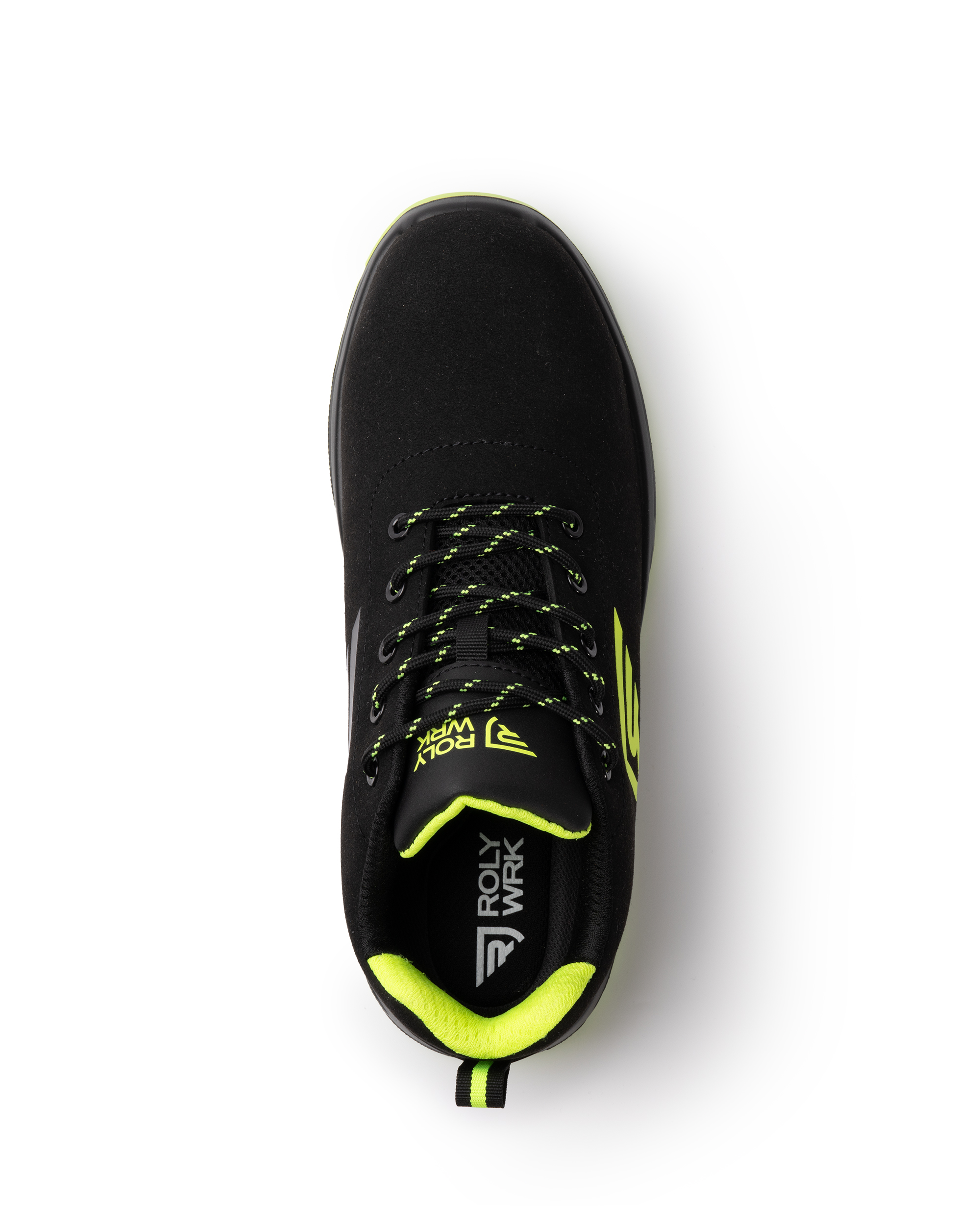 Calzado laboral de estilo deportivo, hecho en microfibra nobuck y refuerzo en zona del talón.