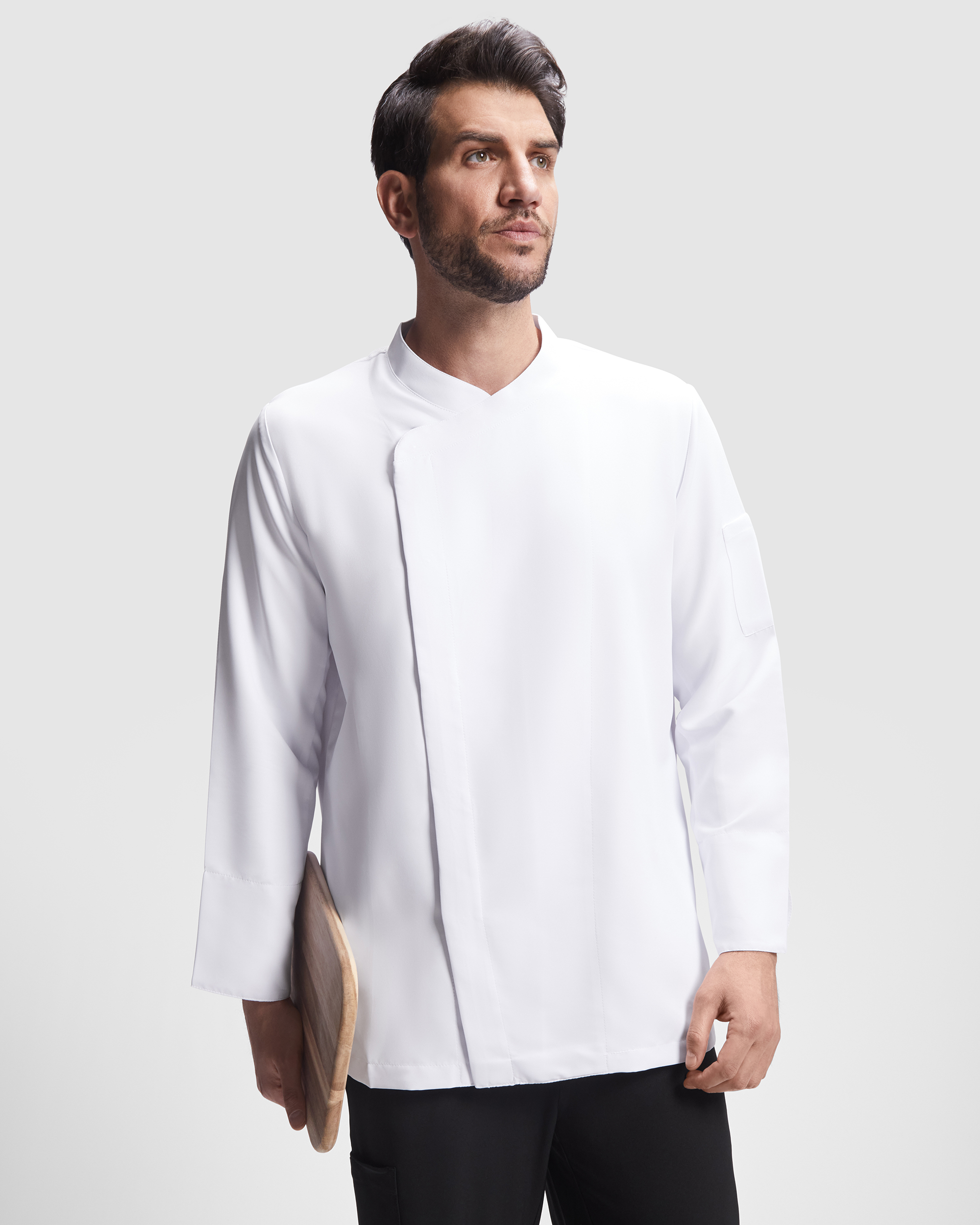 · Cuello tirilla y manga tipo sastre con dobladillo en puños.