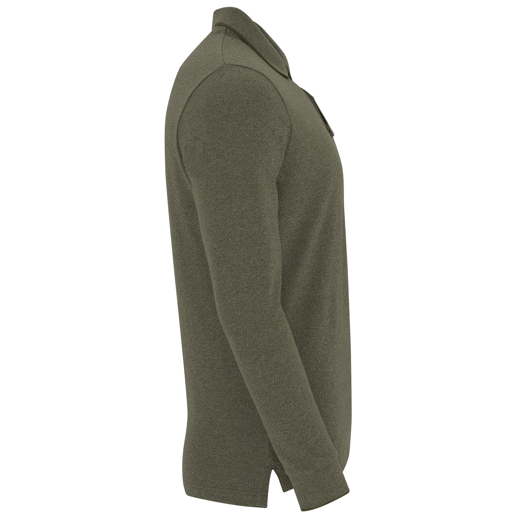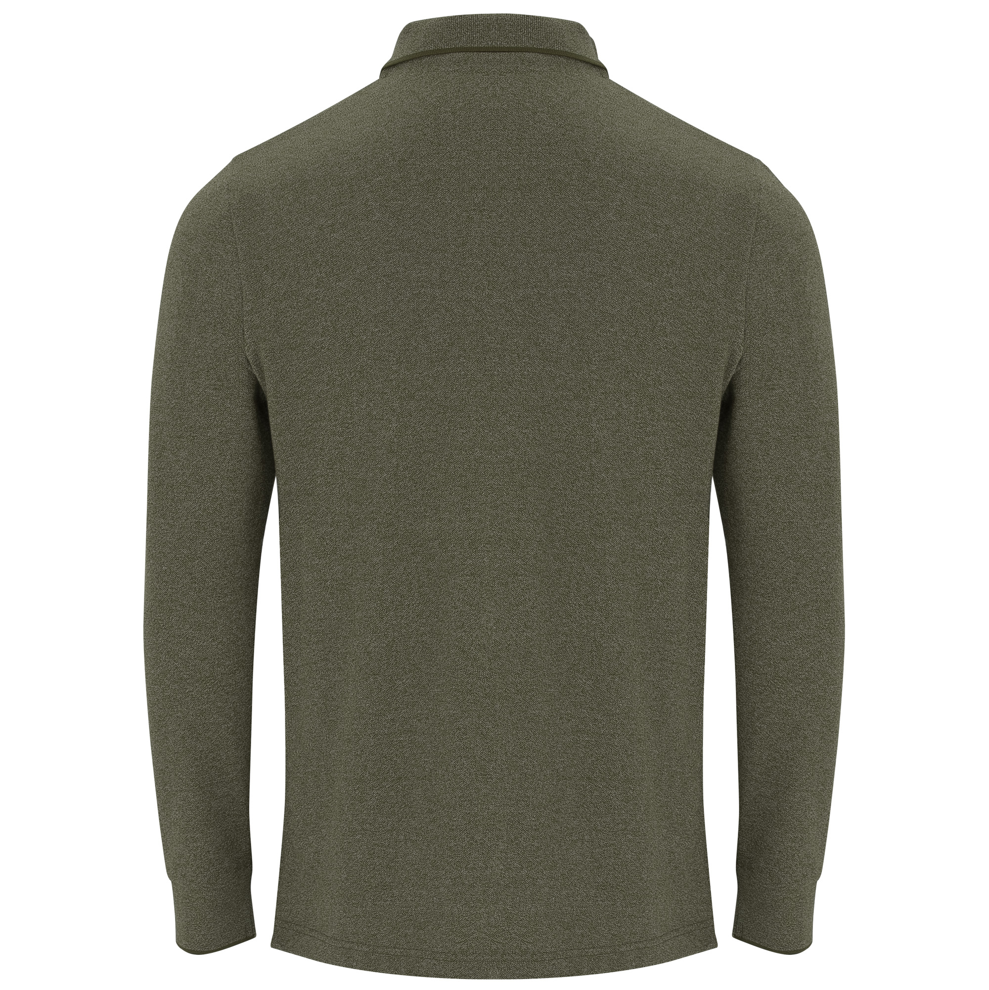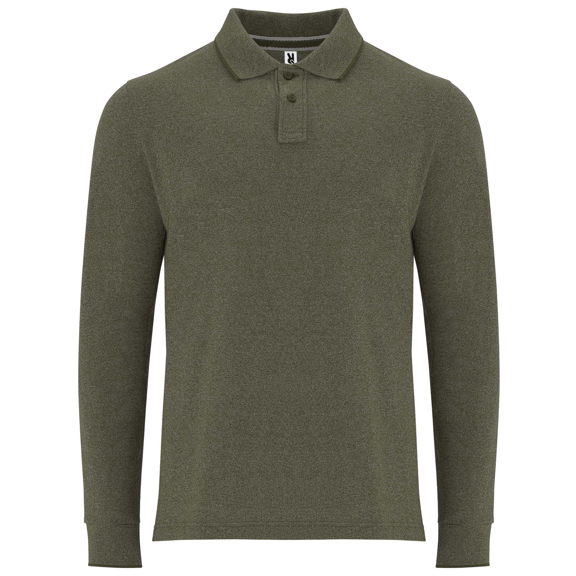 Polo vigoré de manga larga, con tapeta superpuesta de 2 botones a tono. Cuello y puños con detalle en color solido. Cubrecosturas reforzado en el interior del cuello. Aperturas laterales con cinta a contraste decorativa. El patronaje de la espalda es ligeramente mas largo que el delantero.