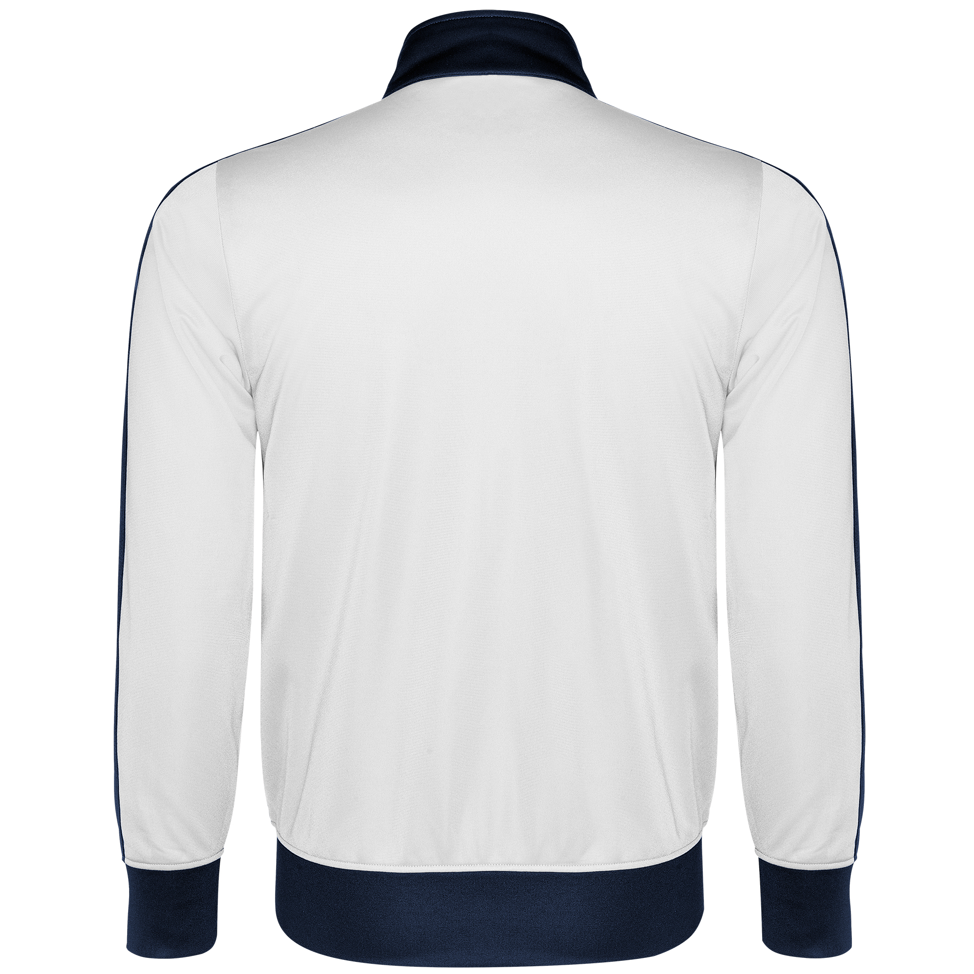 Chándal combinado de chaqueta y pantalón. Cuello alto con protector de cremallera. Bolsillos frontales con vivo en contraste. Puños y cintura en contraste en canalé 1×1. Cremallera central con cubrecosturas interior. Pantalón con cinturilla elástica y cordón ajustable con pespunte de seguridad y dos bolsillos laterales con vivo ancho. Tejido interior aterciopelado muy confortable. Cremallera en el bajo del pantalón.