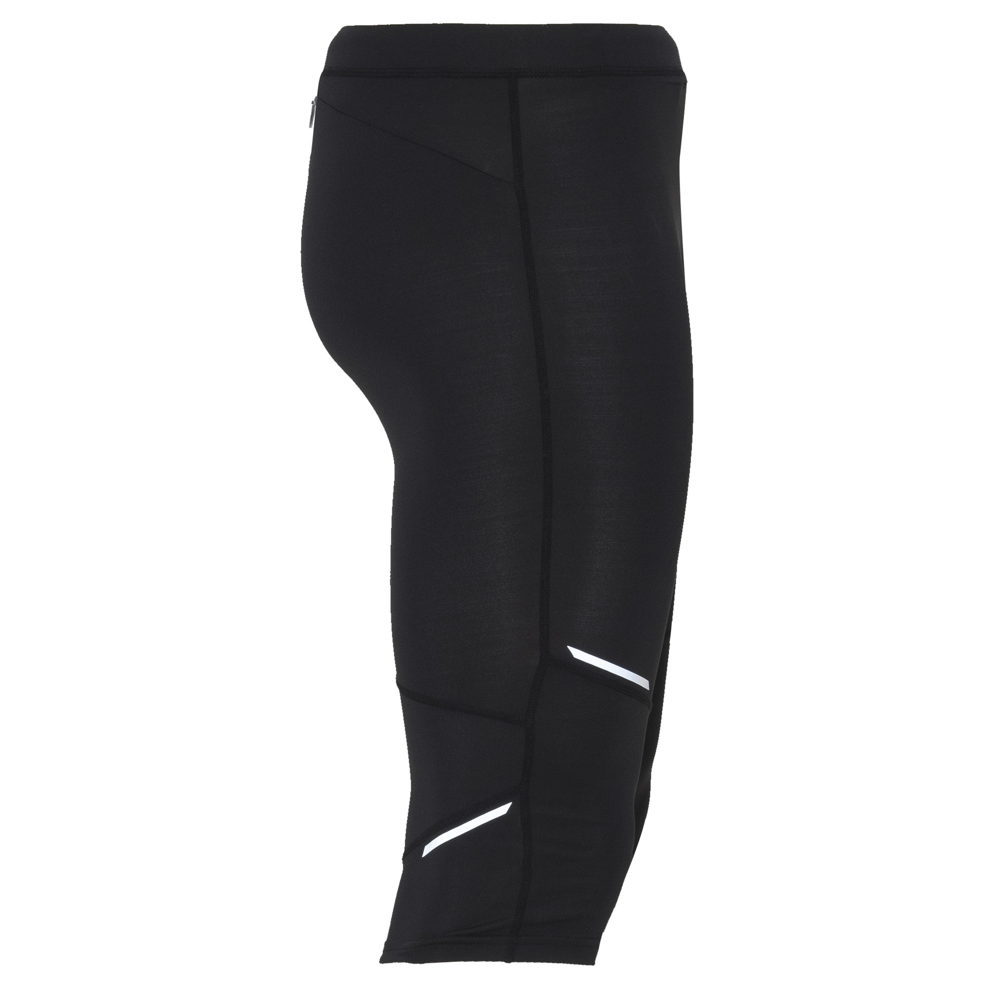 Malla deportiva de hombre a media pierna. Cinturilla elástica y cordón interior cruzado para facilitar el ajuste. Detalles reflectantes. Bolsillo exterior trasero con cremallera.