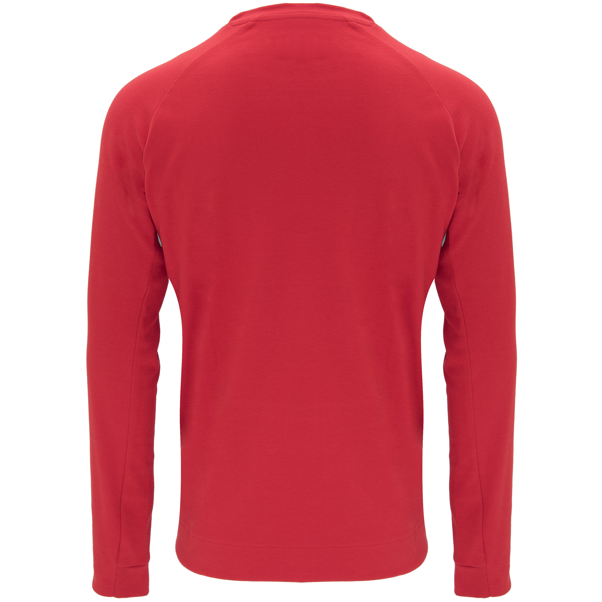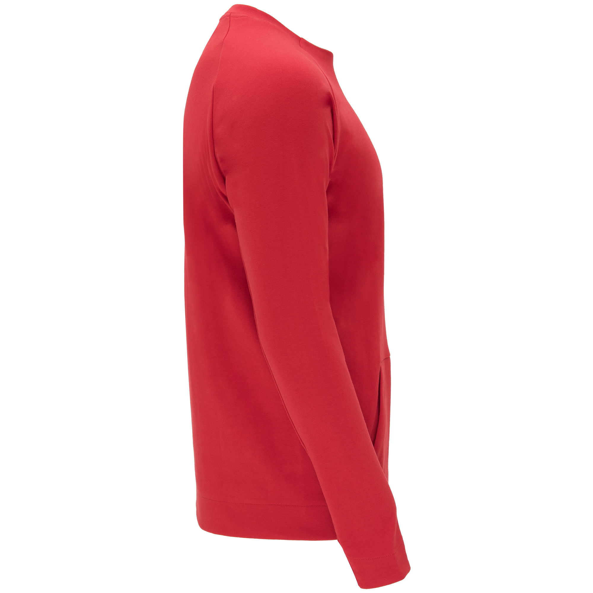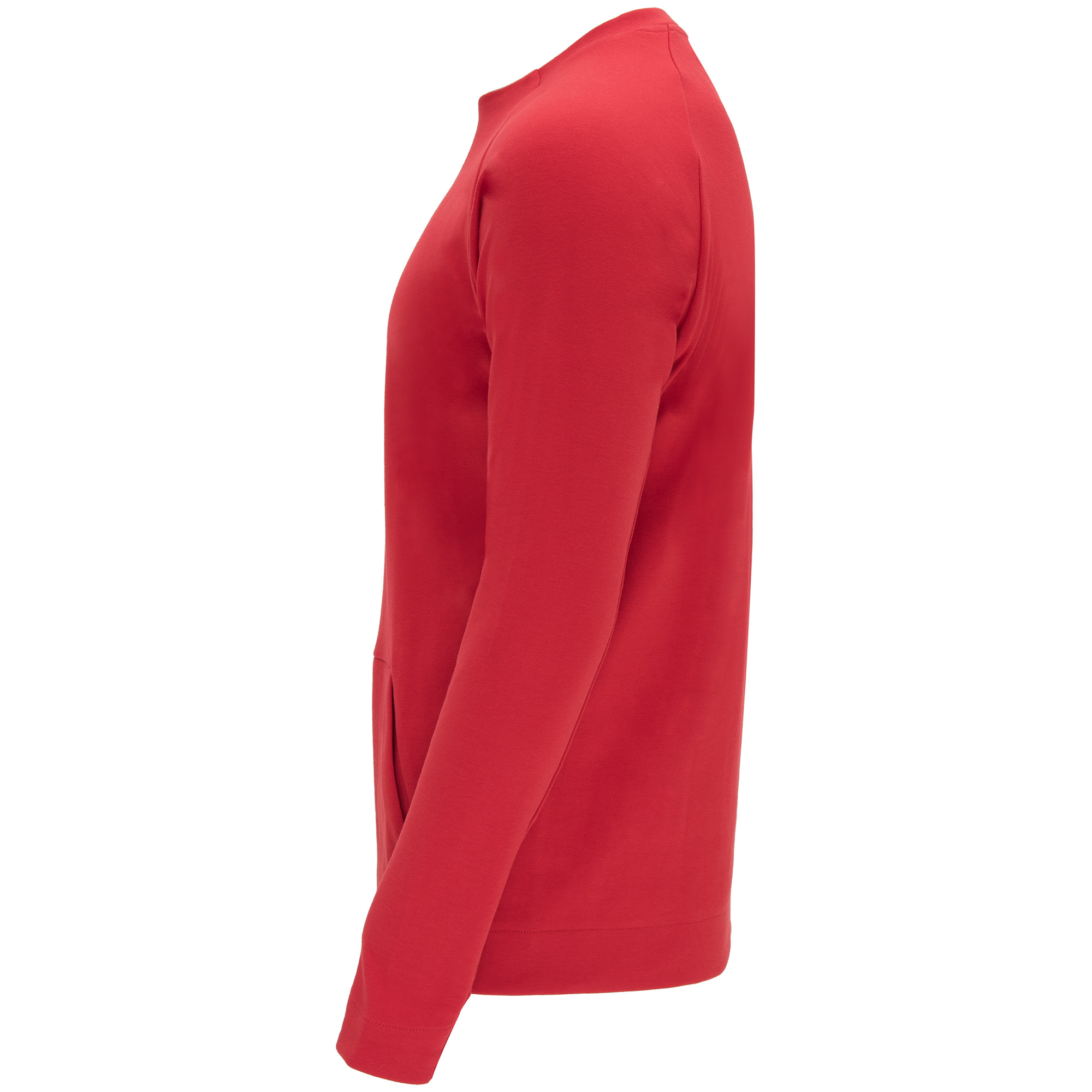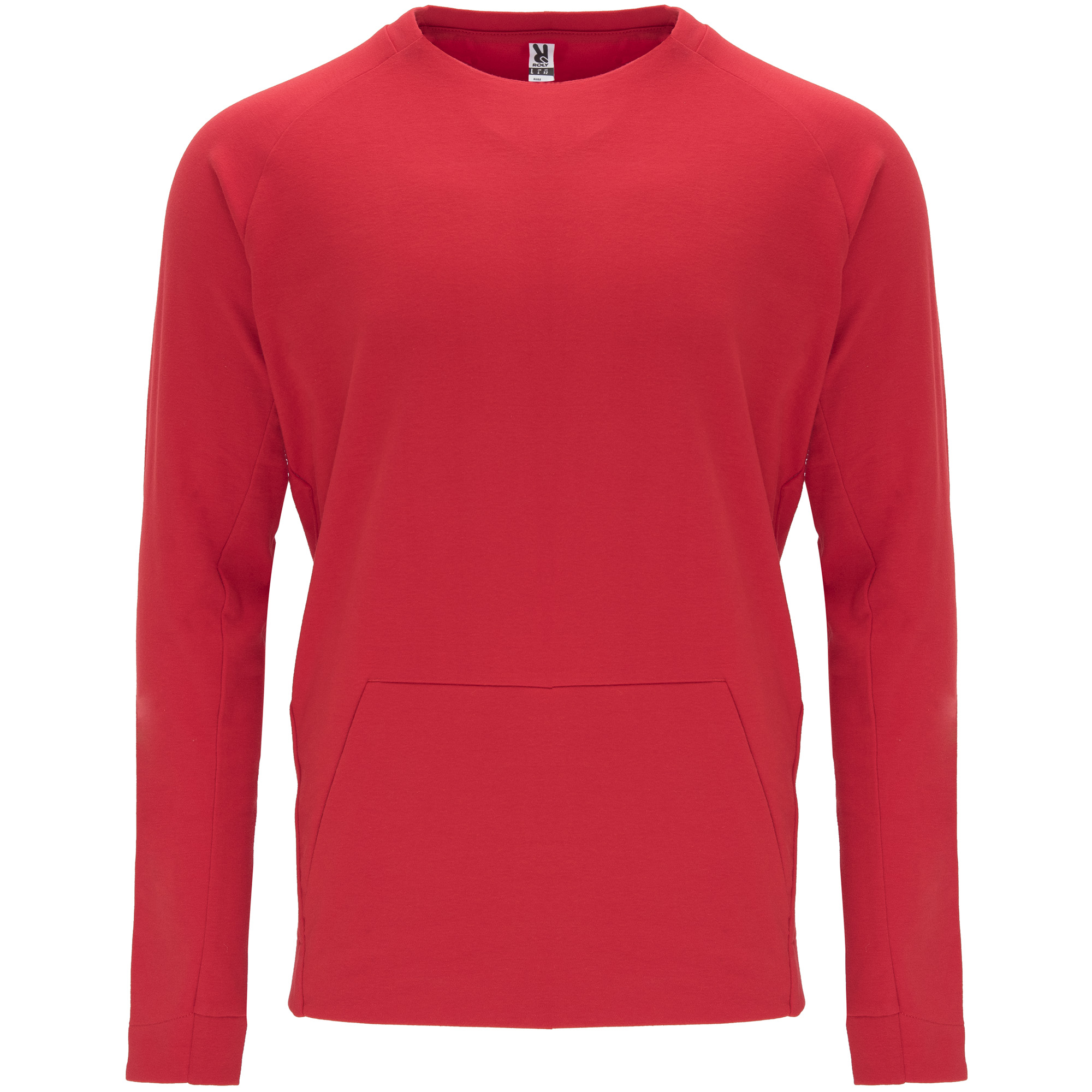 Sudadera de manga larga estilo ranglán. Parte posterior del cuello y parte inferior de los puños en canalé 1×1. Bolsillo canguro con terminación sin costuras. Costuras laterales diagonales hacia parte frontal.