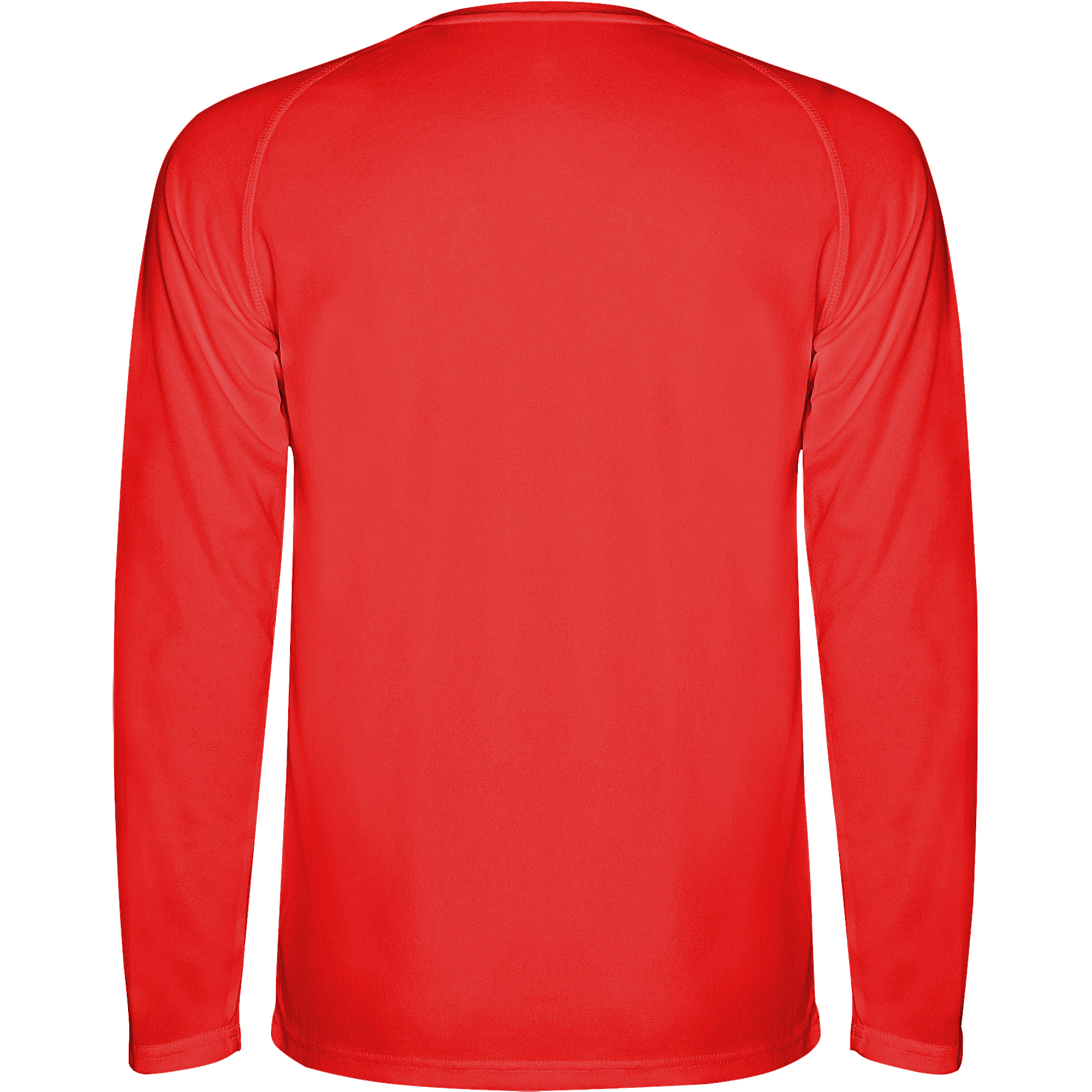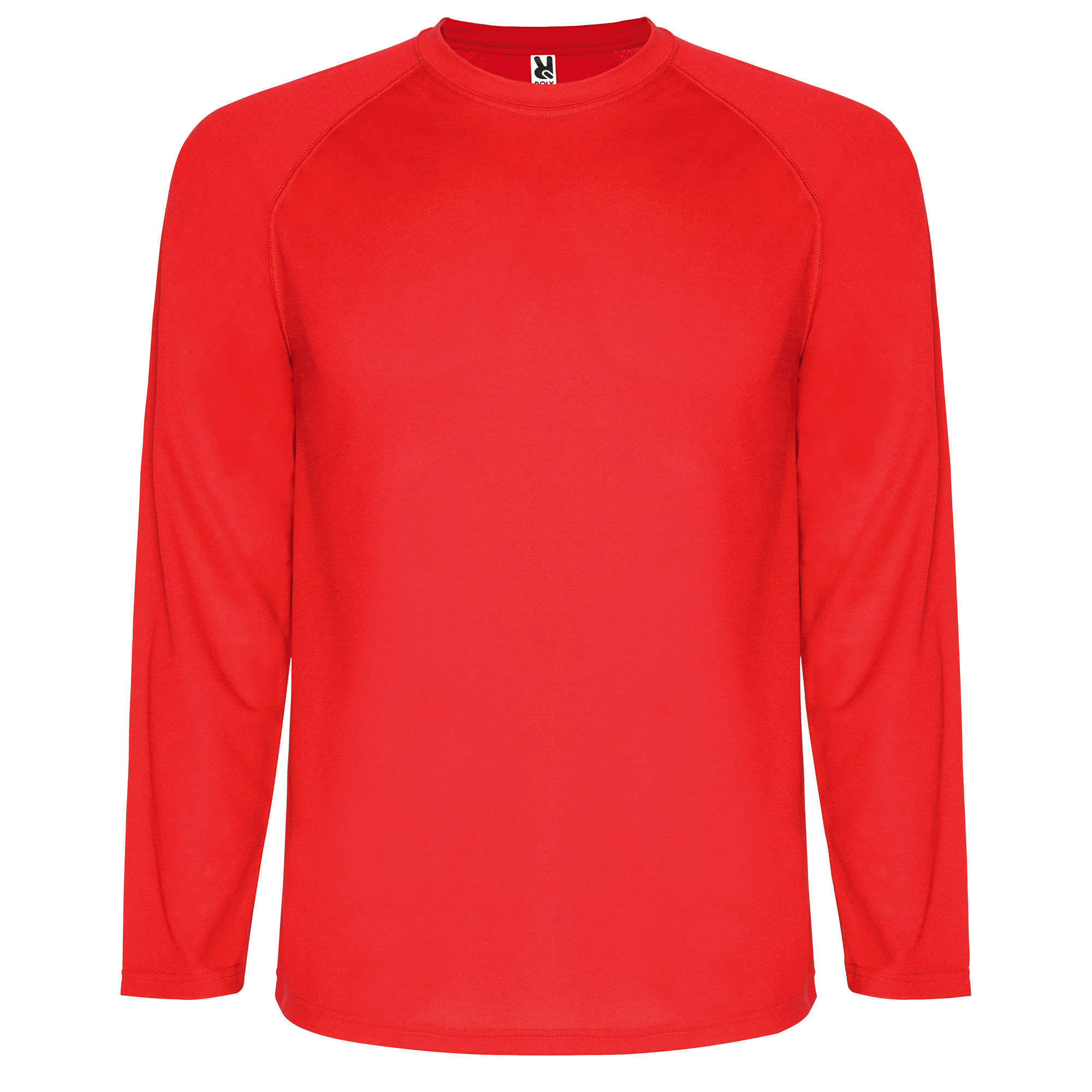 Camiseta técnica de manga larga ranglán, remallada al tono en mangas (sin cortes laterales). Cubrecosturas en cuello. Tejido transpirable de fácil lavado y secado.