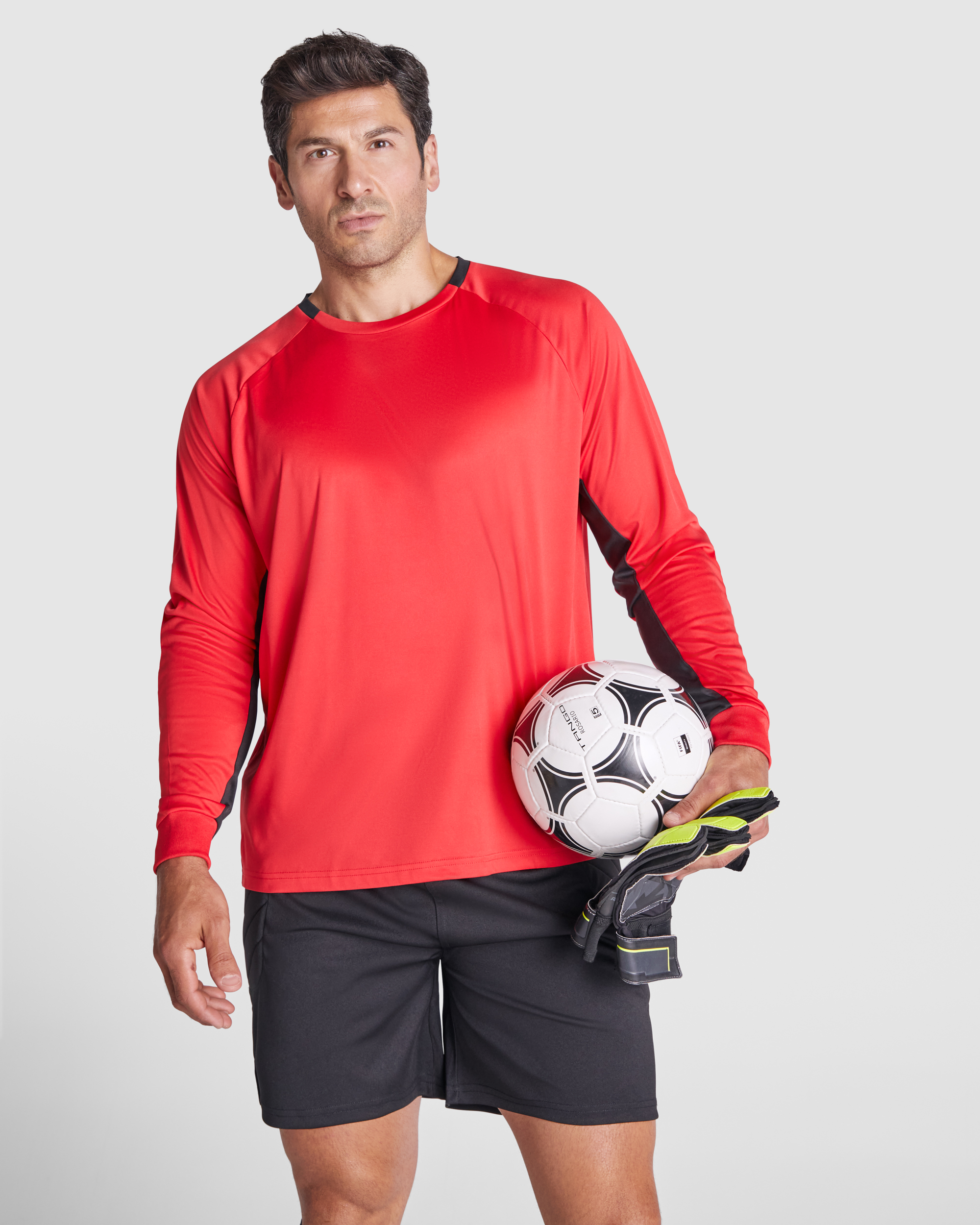 Camiseta de portero unisex, manga larga con coderas acolchadas. Paneles a contraste en interior de mangas, y detalle a contraste en la parte posterior de cuello y puños.