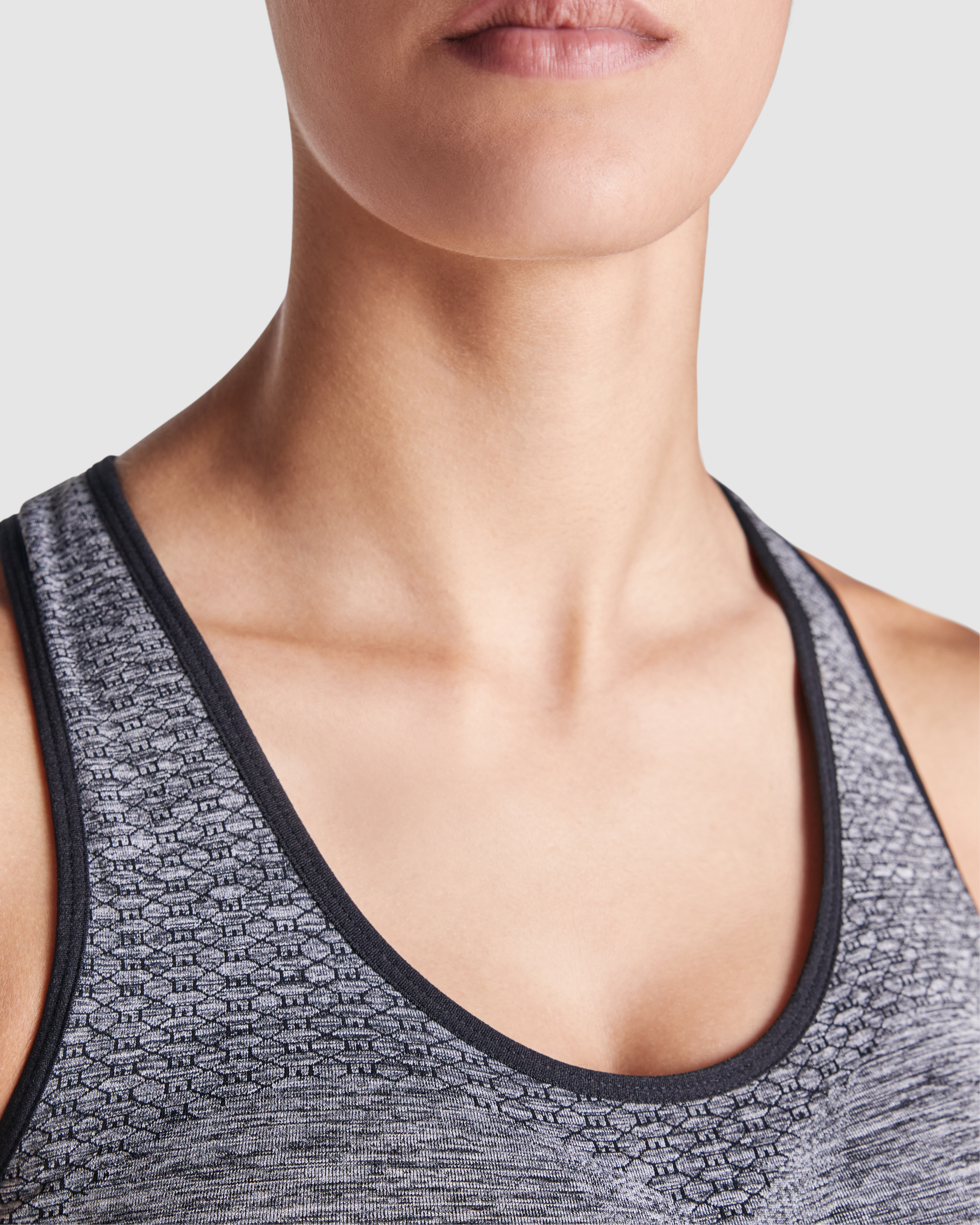 Top técnico multi-deporte de mujer. Espalda estilo nadadora y sin costuras. Sujeción media.